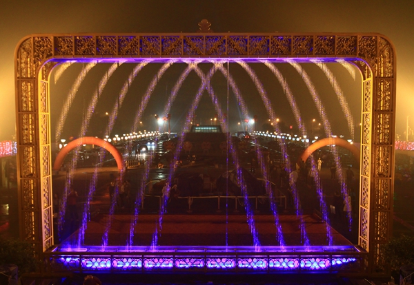數(shù)字水幕通過微型處理器為核心搭建的控制系統(tǒng),通過控制電磁閥來控制水幕上不同的下落組合,從而繪制出豐富的圖案和文字。這種數(shù)字水幕應(yīng)用在展會(huì)上效果極好。